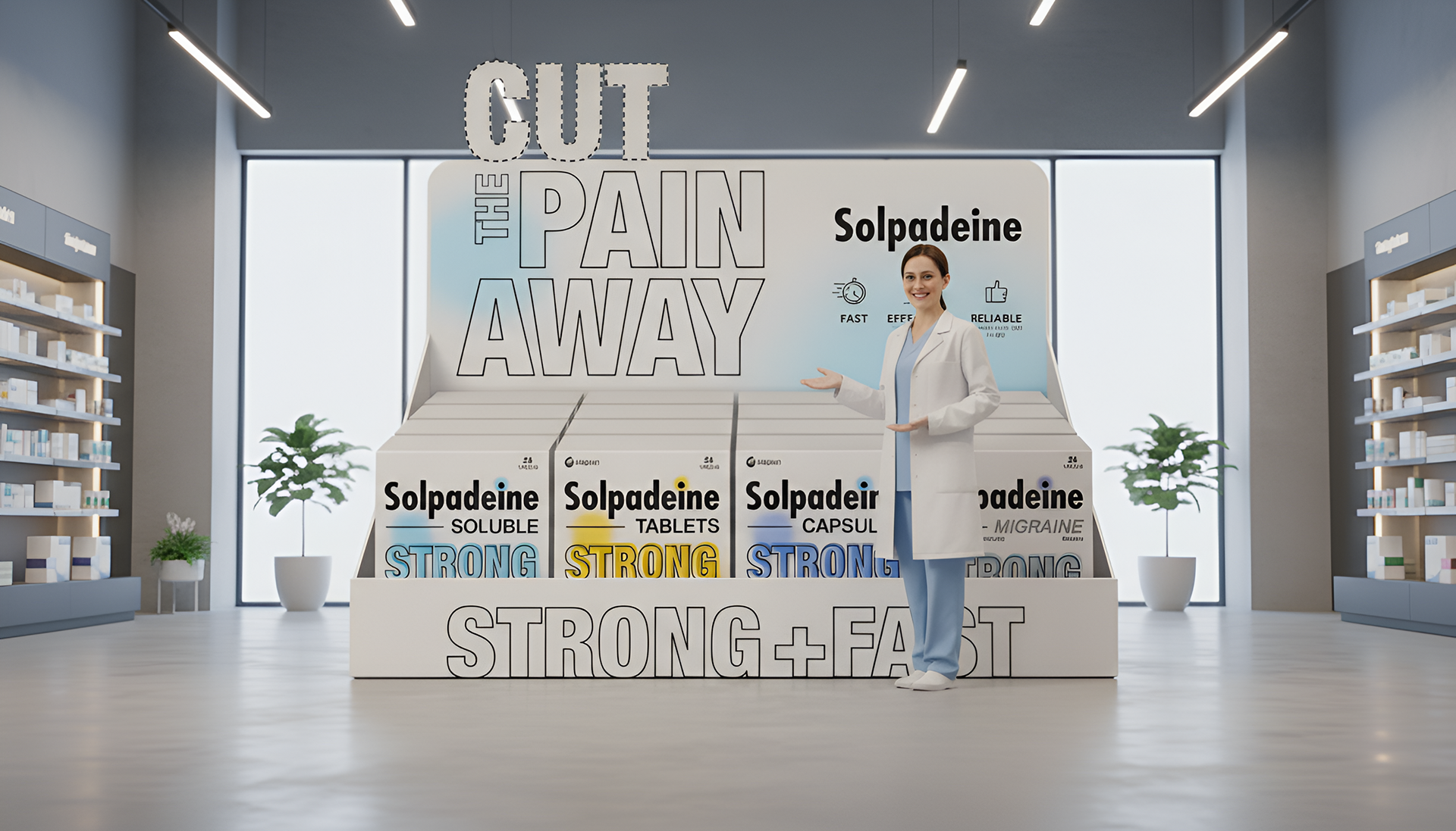 The core message—“STRONG + FAST”—remains central, supported by a minimal, premium look that feels both modern and trustworthy. The brand wanted to keep its slogan, “Cut the Pain Away,” so we adapted the new concept to reflect that promise visually. This redesign strengthens Solpadeine’s shelf presence while communicating its fast, targeted effect in a simple and powerful way.