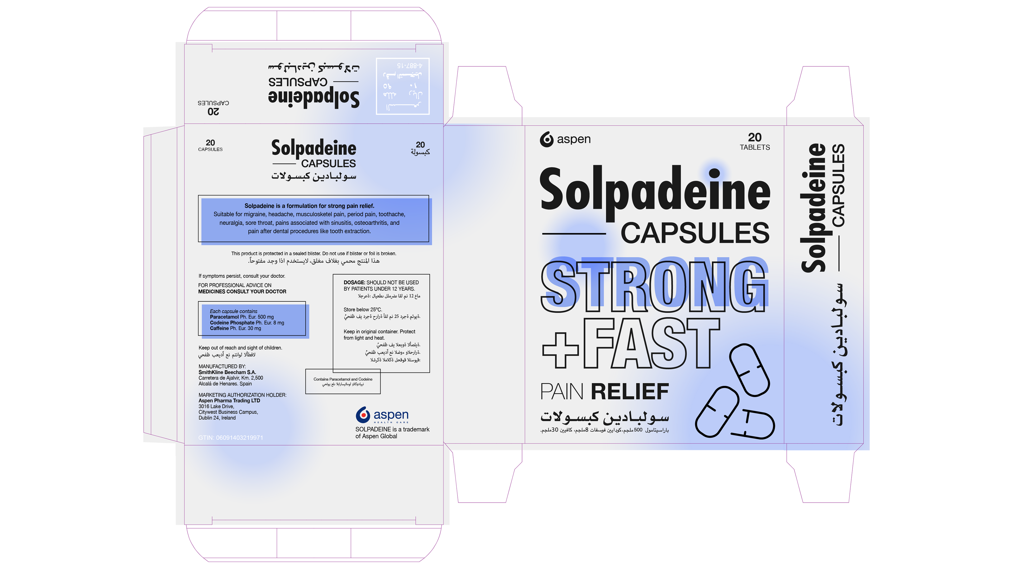 Solpadeine’s previous packaging was visually cluttered, with too many elements competing for attention and a layout that didn’t clearly highlight the product’s key strengths. The yellow pulse graphic resembled a heartbeat more than a symbol of pain, leading to confusion and undermining the medical trust the brand needs to convey. In response, we created a clean, clinical design with a white base—standing out against the red-dominated pain relief category. A subtle color-coded glow helps differentiate product variants, while the bold black logo and iconography bring clarity and confidence.